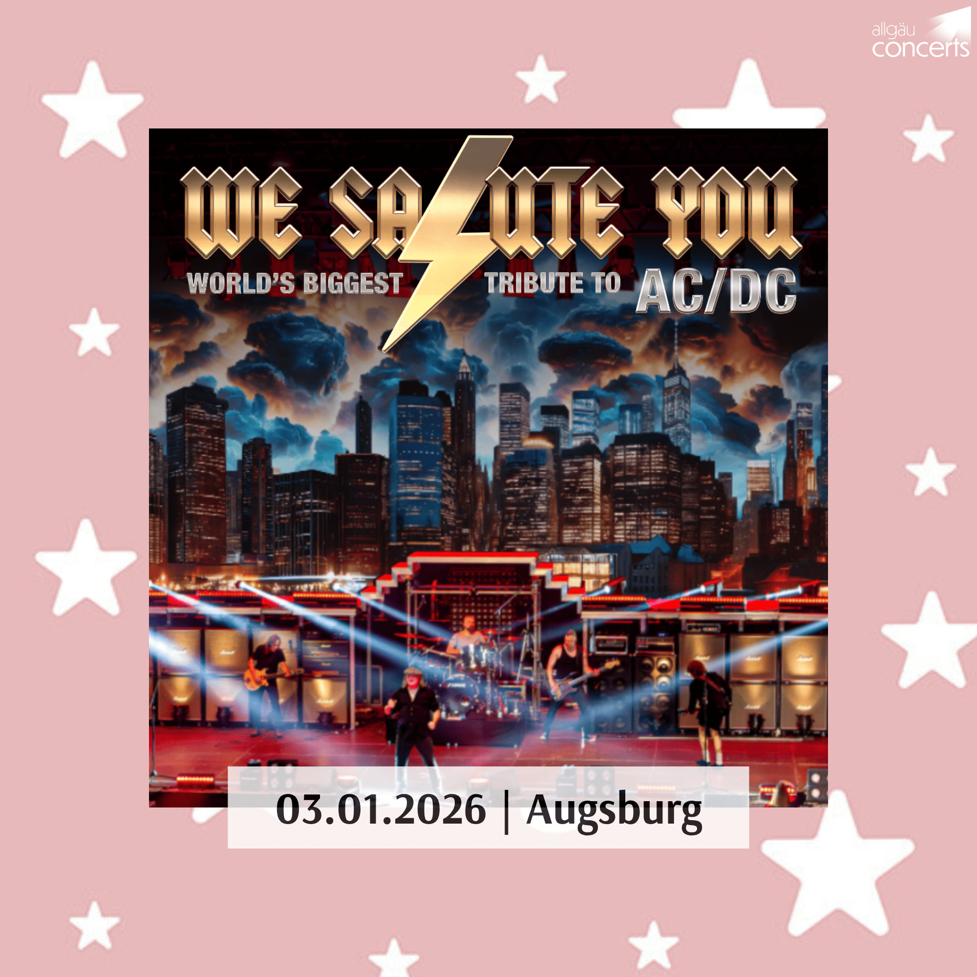 1×2 Tickets für das Konzert von We Salute You am 03.01.2026 in Augsburg.